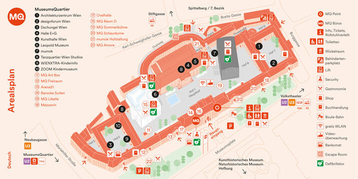 Das gesamte MQ Areal bietet barrierefreien Zugang zu allen Einrichtungen.