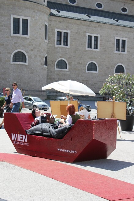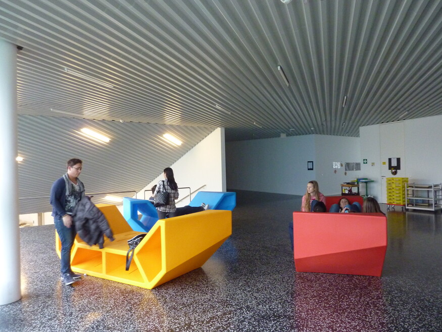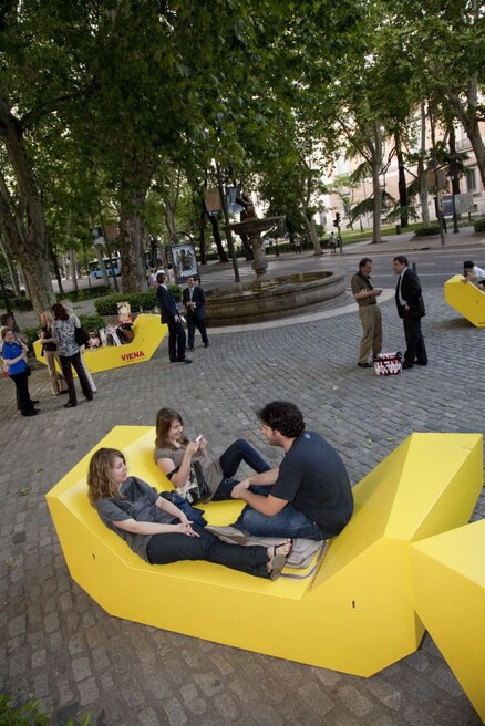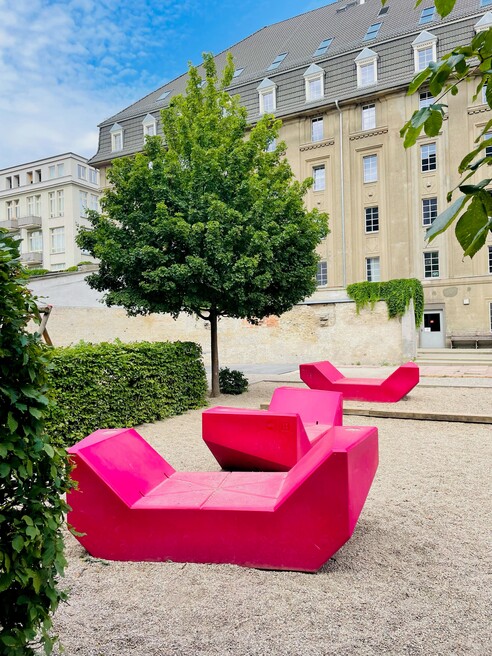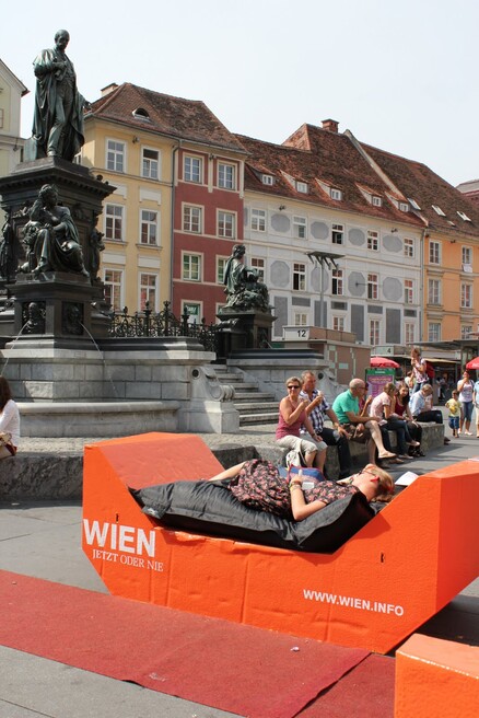 Come and relax in the MuseumsQuartier courtyard furniture, also known as "Enzis", where you're invited to linger and enjoy the moment. The renowned and popular courtyard furniture was designed by PPAG architects. The latest version is made from up to 70 per cent recycled beverage cartons and is fully recyclable at the end of its service life, ensuring it remains in the material cycle.