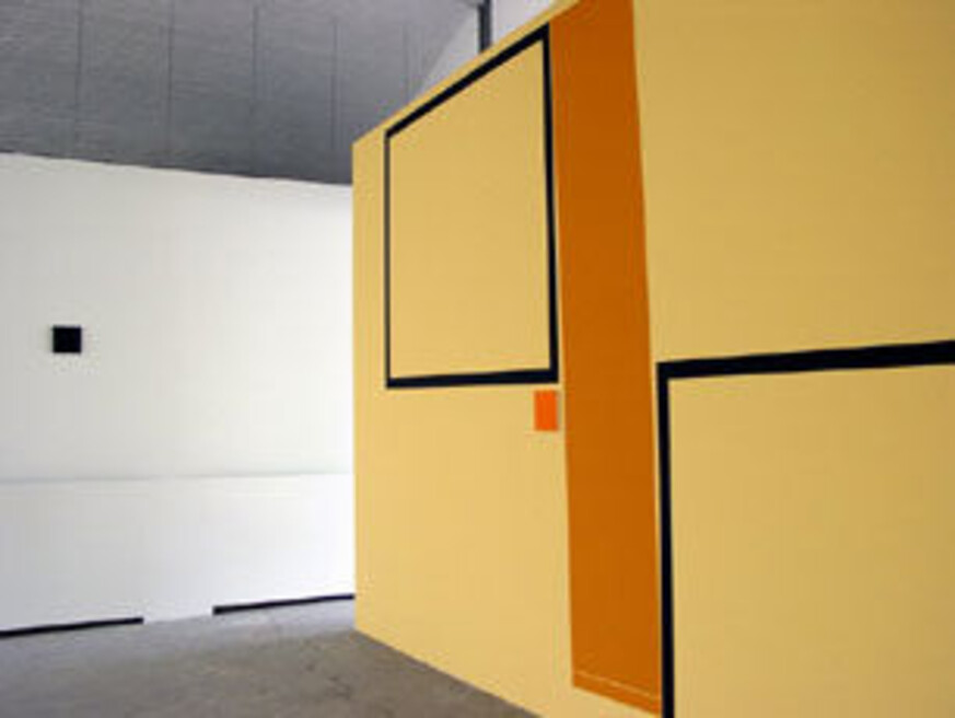 Working in a systematic way seems a starting point for the artist, to use consequently at first, and to rebel against later. The system emerges during the working process in order to be broken down again later on. Paintings succeed each other, originate from each other and form series of an investigation into the working of the image. Whereas the artist used to work with clear references to the physical world outside the painting, her more recent work is of a more abstract level: (spatial) observation.”by Jasper van der Graaf for the exhibition Sainte Victoire #3 – Safe, 2006