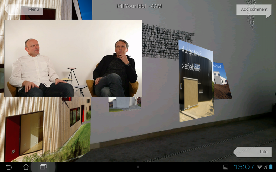 The 4AM platform so far realized a number of exhibitions, workshops and discussions focused on architecture, urbanism, urban space, contemporary art, and new media, which critically examined and questioned current cultural and social phenomena. The exhibitions included Art and Liberation. Europe 1943-1967: Revolting People, Compact City, Urban divan, Kill Your Idol: Psychoanalysis of Contemporary Architecture of the City of Brno, REthinking Media Arts in C(K)ollaborative Environments, Multiplace festival, Exposition of One Project and many others.