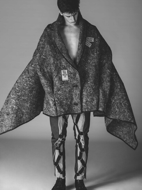 This framework is a development through experiments in which I drape rectangles and square pieces of fabric on the moving body. The result enables new types of expressions and refines the functionality of the garment in relation to the body and its movements. This work will explore the simple geometric pattern construction and deconstruction. Is the rectangle too familiar, too comfortable, for finding interesting new expressions? Since these shapes are used everywhere, in every aspect of our lives, are we in reality so comfortable with them that they cannot surprise us anymore? The aim of this work is to explore the expressional potential in simple geometric pattern construction as a canvas related to the body while questioning the traditional concept of men’s apparel.
