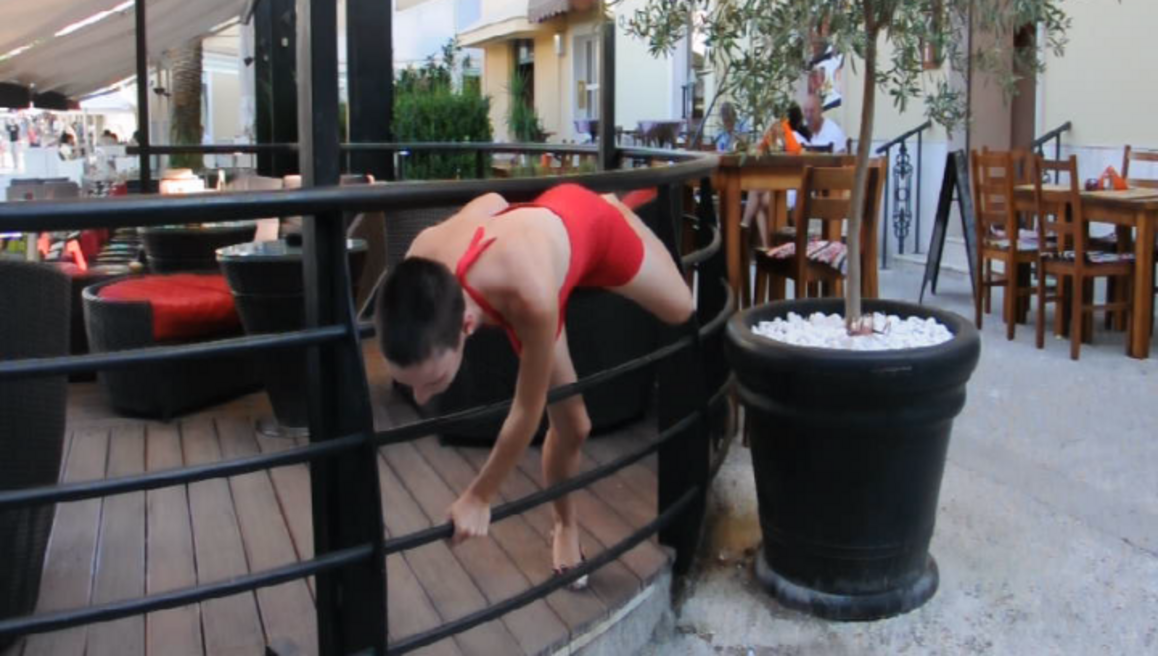 The video “I dare you to…” which was made in 2007 is composed out of seven parts. Each part is a documentation of one challenge that I had to confront. The challenges are graded from the easiest to hardest to me. Some of them are endurance challenges, some are exhibitionistic and some are very unpleasant or just gross. The main goal of this challenges was to do something I had never done before, to overcome inhibitions and fears, or in some cases just to have fun.