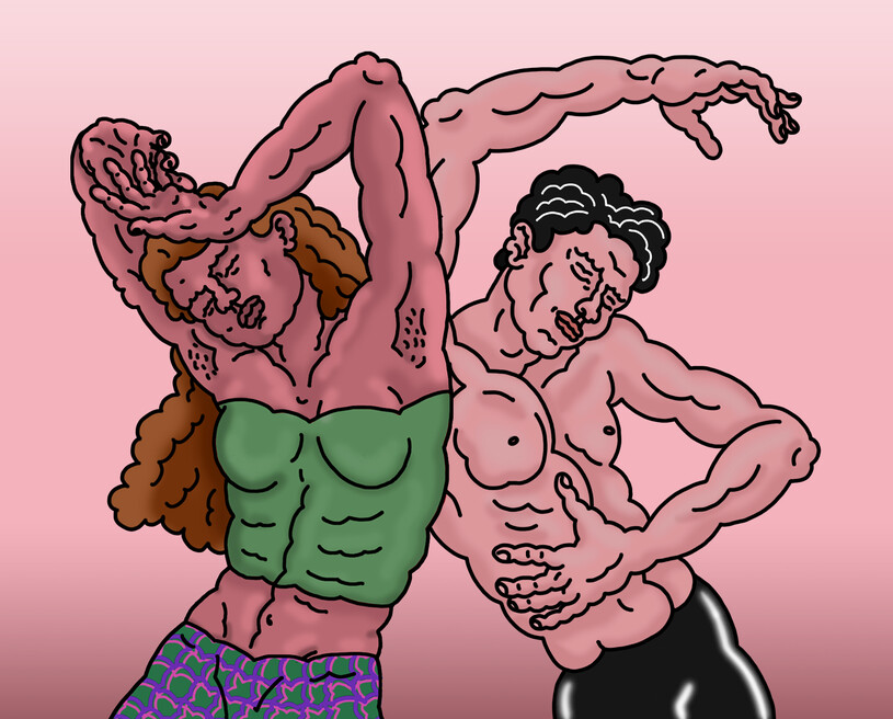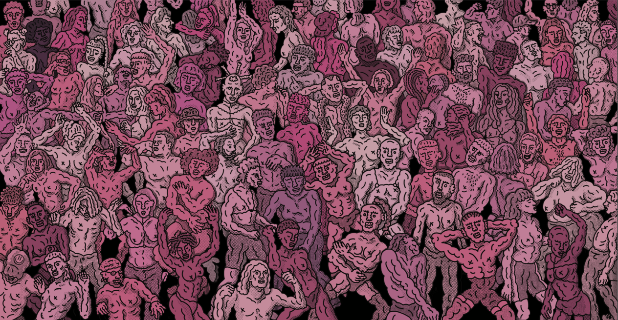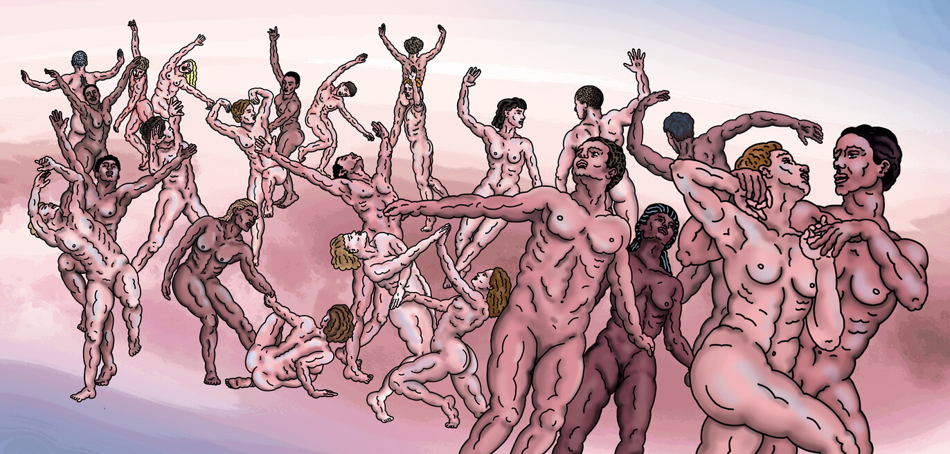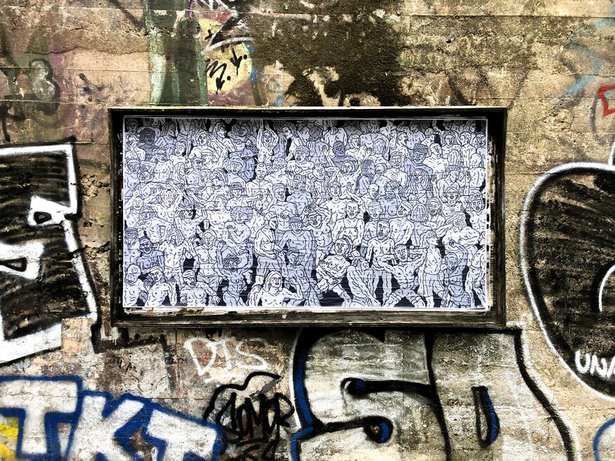 Back in France, aside from her freelance graphic design projects, she decided to give herself some time to explore and develop her own art. As she started drawing again, her intuition led her to develop a bumpy, repetitive, pulsating line and to use it as a creative motif to depict bodies, faces and other objects. Her organic stroke broke with classic beauty norms, producing distorted bold characters, along with a feeling of power; which ultimately allowed her to reinvent her own aesthetic rules and vibrating reality.
