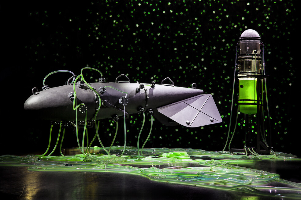 METABOLICA leads us into the factory of life and tells a molecular story of metabolic cycles across five chapters – from the Industrial Revolution to the present and future, from whaling and the petromodern age to current and emerging scenarios of the bioeconomy. Algae and bacteria become artistic collaborators, forming a new visual and aesthetic practice through microbiological processes. This practice expands images, forms and symbols through what are termed metaboles: while symbols signify and represent, metaboles act and perform real processes.