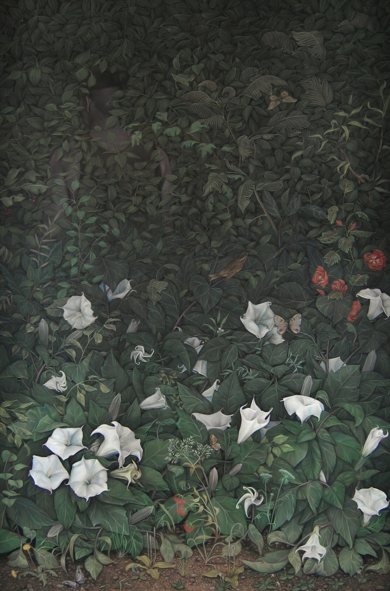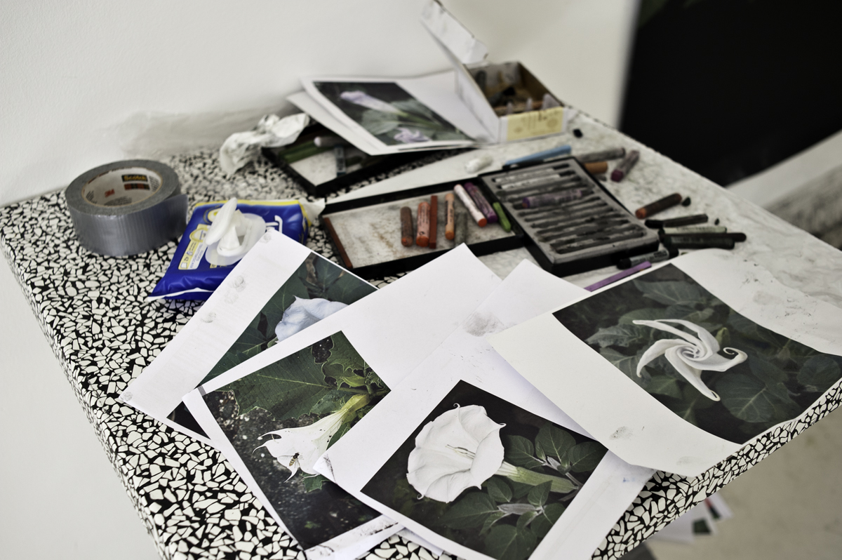 The flower I’m using predominantly for the work I am presently drawing, the Datura (also known as Jimson Weed) is very specific. It only blooms for one night and then it dies. It’s completely poisonous, so it’s dramatic, mysterious and mystical. If people used it as a drug and take more than a tiny portion, it would likely kill them. It can keep produce psychosis for up to two weeks in users. It’s not something you want to take.
