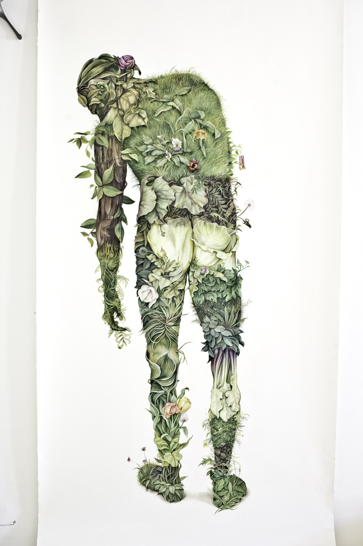 This was the first time I took direct references. When I was back home in Saskatoon, I ended up using those for one massive painting, titled Beautiful Losers. It was close to 20 feet, a homage to the neo classical painters. After that I stopped painting for a while [laughing]. I was very specific about the references even though the result was quite ambiguous and it was vague from where the references came. When I show the painting I show them in context with the drawings I made in Paris. So, in terms of Arcimboldo, it’s kind of a continuation of that. Both Green Man and its pair, Wild Man (2012) are a case in point, these drawings, from my Wilderness Tips exhibition here last fall were in direct reference to the way Arcimboldo defines figuration through fantastical combinations of plant and animal life.