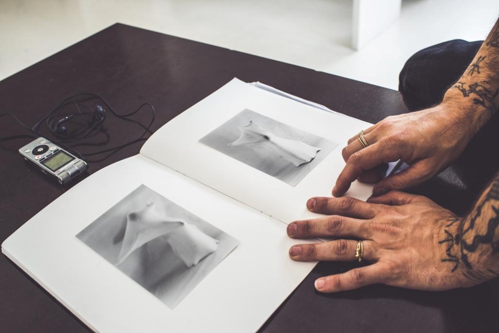 I designed tubular costumes made of Lycra and I put one to three persons not wearing clothes inside. I study the movements people make within those “tubes”. It’s really intimate, sometimes even sexual. When you’re inside, you see your body in a different way than in bed or in the shower, because it’s the only thing you see. At the same time nobody can see you. You’re invisible. These costumes are usually used for therapy with autistic kids. They put the child inside and ask them to play, to turn into a tree, a rock or an eagle. Through the intimate atmosphere within the costume, the kid slowly becomes more relaxed and feels free. I made the same thing for adults, because I think they need it. Most people don’t experience intimate moments anymore. In the end I take pictures, and what you can see is a (human) sculpture. It’s a complex work that combines performance, photography and sculpture.