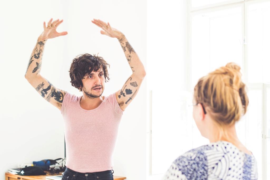 I haven’t seen them in Vienna so far, but there are thousands of them in Rome! People love it, they take pictures, they like the trick although they know it’s a trick. They stop, but they don’t want to to uncover the trick behind it. Unlike real magic, the trick concerns anything that is fake. So I asked myself: What if I expose what is hidden and reveal the trick? Let’s make a levitation chair! It is actually called “levitation device”. It stands in the exhibition hall and you can use it. The performance on September 24th is the most important part of this work, the chair is going to be empty for the rest of the show.