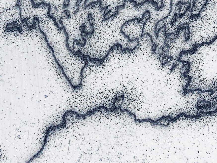 With ‘Tintenkiller’, I addressed the typical Sunday evening TV phenomenon of an entire nation, connecting people of all ranks: detective series ‘Tatort’. I used ink to ground 3,000 single frames, erased specific spots with ink eradicator and digitally combined them with 3,000 more single images on which I had drawn the fine facial expressions with a pen. For a detective series, you write a story – its symbol is the ink. And in the story, a life is eradicated, hence the ink eradicator. I compressed and intertwined recurring elements such as discovering the body, investigators’ internal communication, hectic phone calls or wild chases. From this concentrate, I generated an abstract story.
