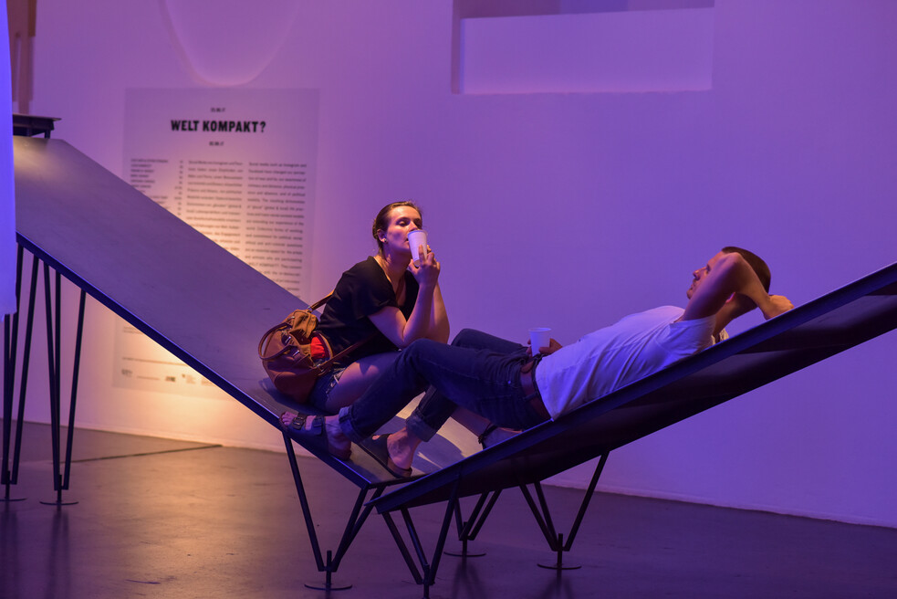 The exhibition project “WELT KOMPAKT?” focuses on transdisciplinary artistic practices that have come into play along with our increasingly more direct access to information, communication tools, and social media. The use of social media channels such as Instagram and Facebook alters our sense of near and far, our awareness of intimacy and distance, of bodily presence, absence, and political mobility. What influence does social media have on how so-called “glocal” (global & local) projects and ways of living are organized? How does social media affect processes around freedom of expression and freedom of choice, or the democratization of knowledge and information transfers?