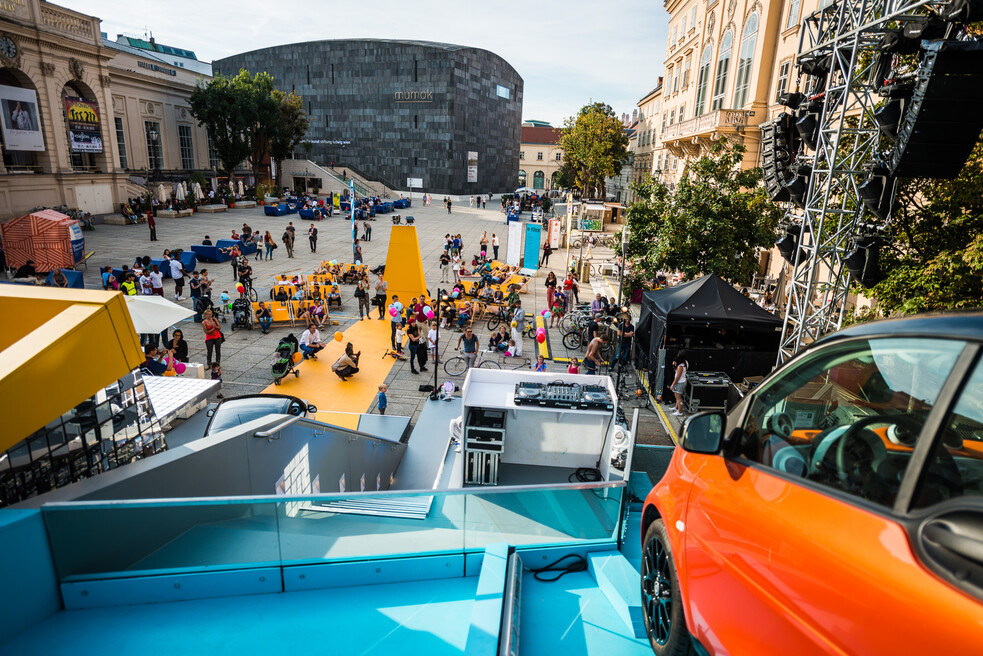 You, too, can take advantage of this very special atmosphere. Plan your next promotional event, product presentation, facade projection, or event in the courtyards and outdoor areas of the MQ. Located in the heart of Vienna, the MQ gives you an opportunity to reach a young, urban, culturally aware audience as well as international guests from around the world.