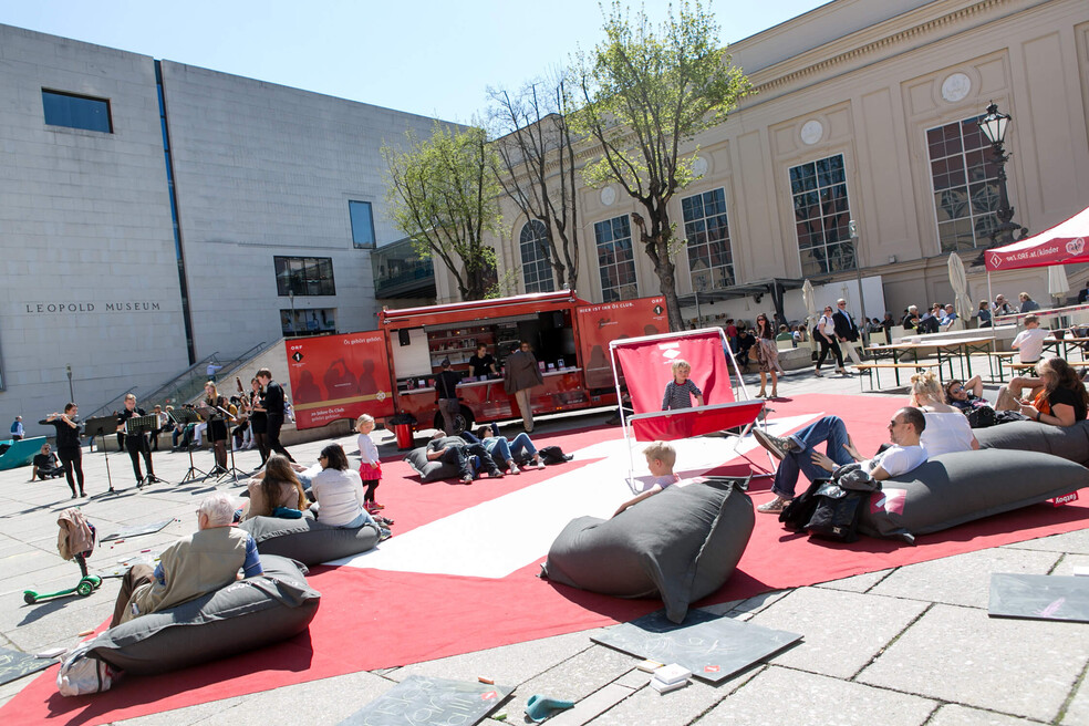 Each year, 4 million people come to the MuseumsQuartier, one of the world’s largest complexes for contemporary art and culture, to visit its museums, enjoy its extensive cultural and recreational offerings, or simply relax in the cafés and restaurants or courtyards.