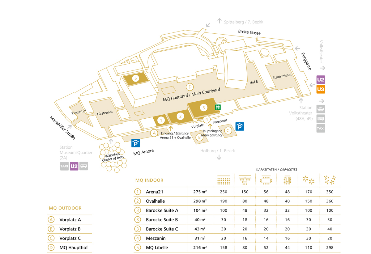 Civil wedding ceremonies: You can have your marriage officer come to the MuseumsQuartier Wien and perform the ceremony here. You will receive additional information from registrar’s office when you register to marry.