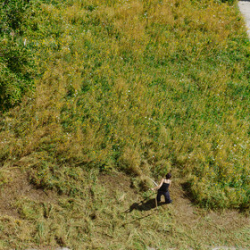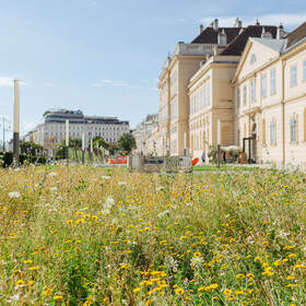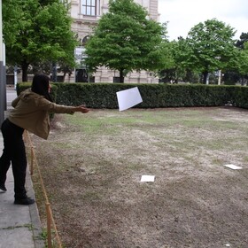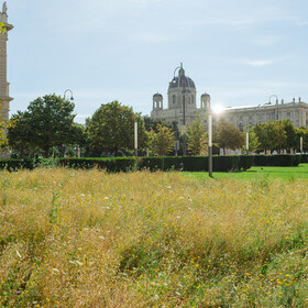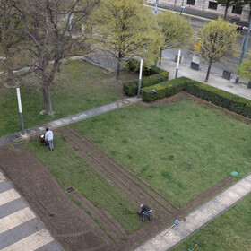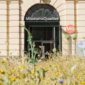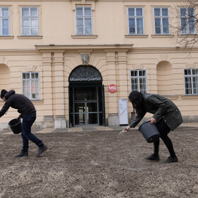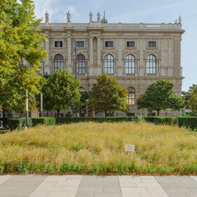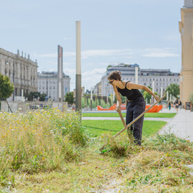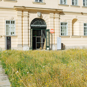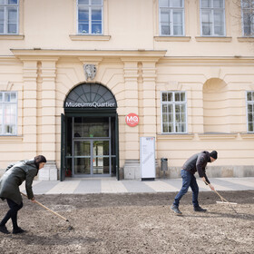 The MuseumsQuartier has invited the artist Anita Fuchs to deal with a 250 m² lawn on the forecourt of the site. The area will become an "Versuchsfeld1" that the artist will explore and develop artistically over a period of two years.