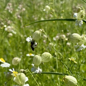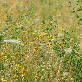 Achillea millefolium - Common yarrow / Agrostemma githago - Corn cockle / Anthemis arvensis - Corn chamomile / Anthemis tinctoria - Golden marguerite / Anthoxanthum odoratum - Sweet vernal grass / Anthyllis vulneraria - Common kidney vetch / Betonica officinalis - Common hedgenettle / Briza media - Quaking grass / Buphthalmum salicifolium - Ox-eye / Campanula patula - Spreading bellflower / Carum carvi – Caraway / Centaurea jacea - Brown knapweed / Centaurea scabiosa - Greater knapweed / Cichorium intybus - Common chicory / Crepis biennis - Rough hawksbeard / Cynosurus cristatus - Crested dog’s-tail / Daucus carota - Wild carrot / Dianthus carthusianorum - Carthusian pink / Dianthus deltoides - Maiden pink / Dipsacus follunum - Wild teasel / Echium vulgare - Viper’s bugloss / Festuca rupicola - Furrowed fescue / Galium album - White bedstraw / Galium verum - Lady’s bedstraw / Geum urbanum - Wood avens / Heracleum sphondylium – Hogweed / Hypericum perforatum - St. John’s wort / Knautia arvensis - Field scabious / Leontodon hispidus - Bristly hawkbit / Leucanthemum vulgare - Ox-eye daisy / Lychnis flos-cuculi - Ragged-robin / Lycnis viscaria - Clammy campion / Malva moschata - Musk mallow / Matricaria chamomilla – Chamomile / Medicago falcata - Sickle alfalfa / Myosotis arvensis - Field forget-me-not / Onobrychis viciifolia - Common sainfoin / Pastinaca sativa – Parsnip / Petrorhagia saxifraga - Tunic flower / Plantago lanceolata - Ribwort plantain / Plantago media - Hoary plantain / Prunella grandiflora - Large-flowered selfheal / Prunelle vulgaris - Common selfheal / Salvia pratensis - Meadow clary / Sanguisorba minor - Salad burnet / Scabiosa columbaria - Small scabious / Silene dioica - Red campion / Silene vulgaris - Bladder campion / Stellaria graminea - Common starwort / Tragopogon pratensis ssp. orientalis - Meadow salsify / Verbascum chaixii -Nettle-leaved mullein