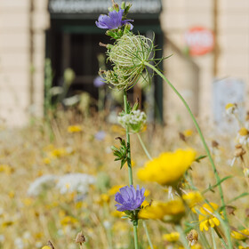 At the beginning of April, the previous turf, which has no ecological benefit, was removed, the soil prepared and the seed mixture sown. The gradual development of the former lawn into a biodiverse meadow was made/will be made tangible for the public in workshops and lectures. In one of the MQ showrooms (entrance vis-à-vis), the artist has set up a Field Station, in which she documents the process with objects, videos, photographs, and texts.