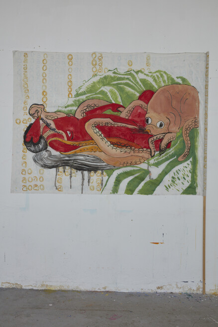 In the last years of my practice I have been interested in researching and exploring feminist approaches to art making, as well as looking for a personal way of realizing these projects. In 2011 I have gone back to my childhood way of drawing and representing experiences via anthropomorphic characters, a way that I believe offers me a more direct and sensual means of artmaking. In 2016 I have started to make erotic or pornographic cartoonlike imagery, inspired by the Shunga genre of 19th century Japanese prints, as a way of rendering a type of what I perceive as “affirmative feminism”, a feminism that creates myths, imagery and freedom for women and other oppressed groups. I am also concerned with the accessibility of contemporary art and of education in a broad sense. In 2013 I have co-founded an arts education organization that is active in museums and schools in Romania, and that proposes methodologies for pedagogy that respect the pupils’ individuality and power of choice at all levels. For the residency in Vienna I am interested in exploring a term I have thought of lately, with a working title of “Patterned Feminism”. I have started to research textile patterns from all over the world and I have begun to introduce them into my drawings and paintings. I am interested in the merging of social commentary and the ornament or the decorative, a field that historically has been developed for the most part by women, and that has begun to be re-appropriated by contemporary feminist artists. I am interested in contemporary female artists who make use of patterns and repetition, such as Agnes Martin, Yayoi Kusama, Joana Vasconcelo, Beatriz Milhazes, Candida Alvarez and the Future Force Geo Speculators collective, among others. I will then look at ways to appropriate their use of pattern and design to introduce them in my own DIY mythic imageries, and to find ways to place them in public space or site-specific installations that have, at least potentially, a wide audience.