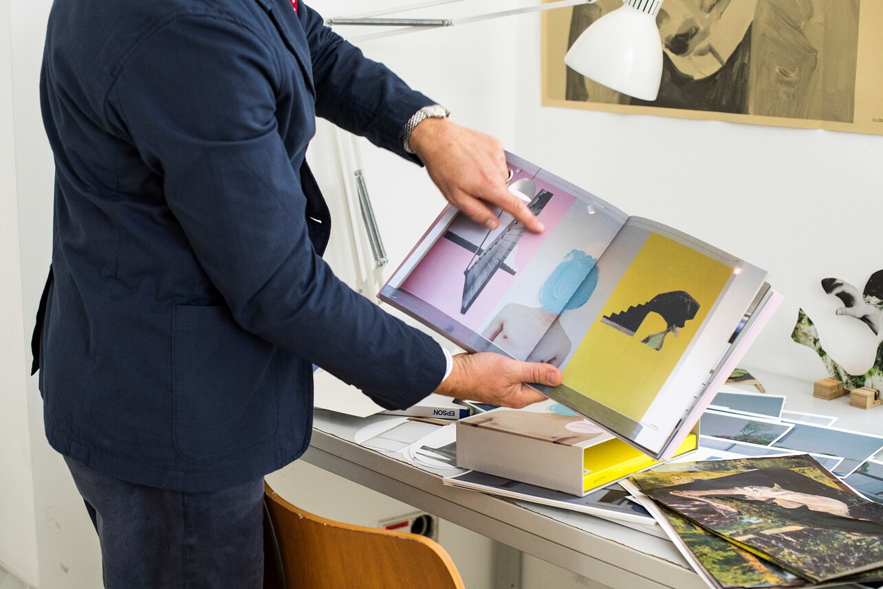 I think that art, when integrated very carefully into an architectural structure, can create a completely different understanding of the surrounding. I wrote a PhD thesis about this interdependence between art and architecture. I can resize this small collage here and it becomes art work filling the whole room. Such works give a completely new and dynamic atmosphere to a building.