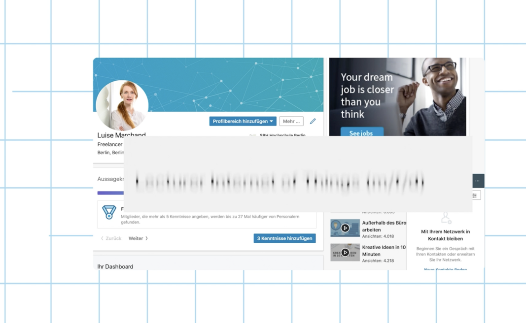 Im Video geht es vor allem um die neuen Arbeitswelten, in denen sich diese Gig-Worker bewegen und um Firmen, die sich eine New-Work-Philosophie auf die Fahne schreiben. Die Idee dazu ist entstanden, als ich kurz nach meinem Studienabschluss viele Jobanzeigen durchsuchte und dabei bemerkte, dass – egal welche Position ausgeschrieben wird – immer auf dieselbe Sprache zurückgegriffen wird. Auffällig war auch eine wahnsinnige Positivität in der Bildsprache, ein Versprechen, wie man es aus der Werbefotografie kennt. Ich habe versucht, ebendiese Bildsprache und die immer wiederkehrenden Floskeln in meine Arbeit einzubinden. Dank eines Stipendiums war es mir möglich, mir ein Jahr Zeit dafür zu nehmen, mich für diese ganz unterschiedlichen Jobs zu bewerben und den Prozess zu dokumentieren. So sieht man zu Beginn des Videos einige meiner LinkedIn-Profile, die ich je nach Stellenausschreibung mit passenden Fotos, Skills und Kontakten bestückte, und entsprechende Jobvorschläge, die mir aufgrund meines Profils angezeigt wurden. Durch diesen Teil des Videos führt eine männlich klingende Stimme, die eine Onboarding-Session in Form einer Meditation leitet. Der zweite Teil des Videos wird von einer Protagonistin moderiert, die genau diesen Onboarding-Versprechen folgt und beginnt, diese zu hinterfragen.