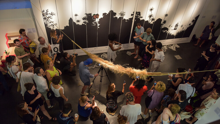 The installation “Passion Fruit/Maracujá” is part of the exhibition WELT KOMPAKT? curated by Ursula Maria Probst at frei_raum Q21 exhibition space / MQ Wien.