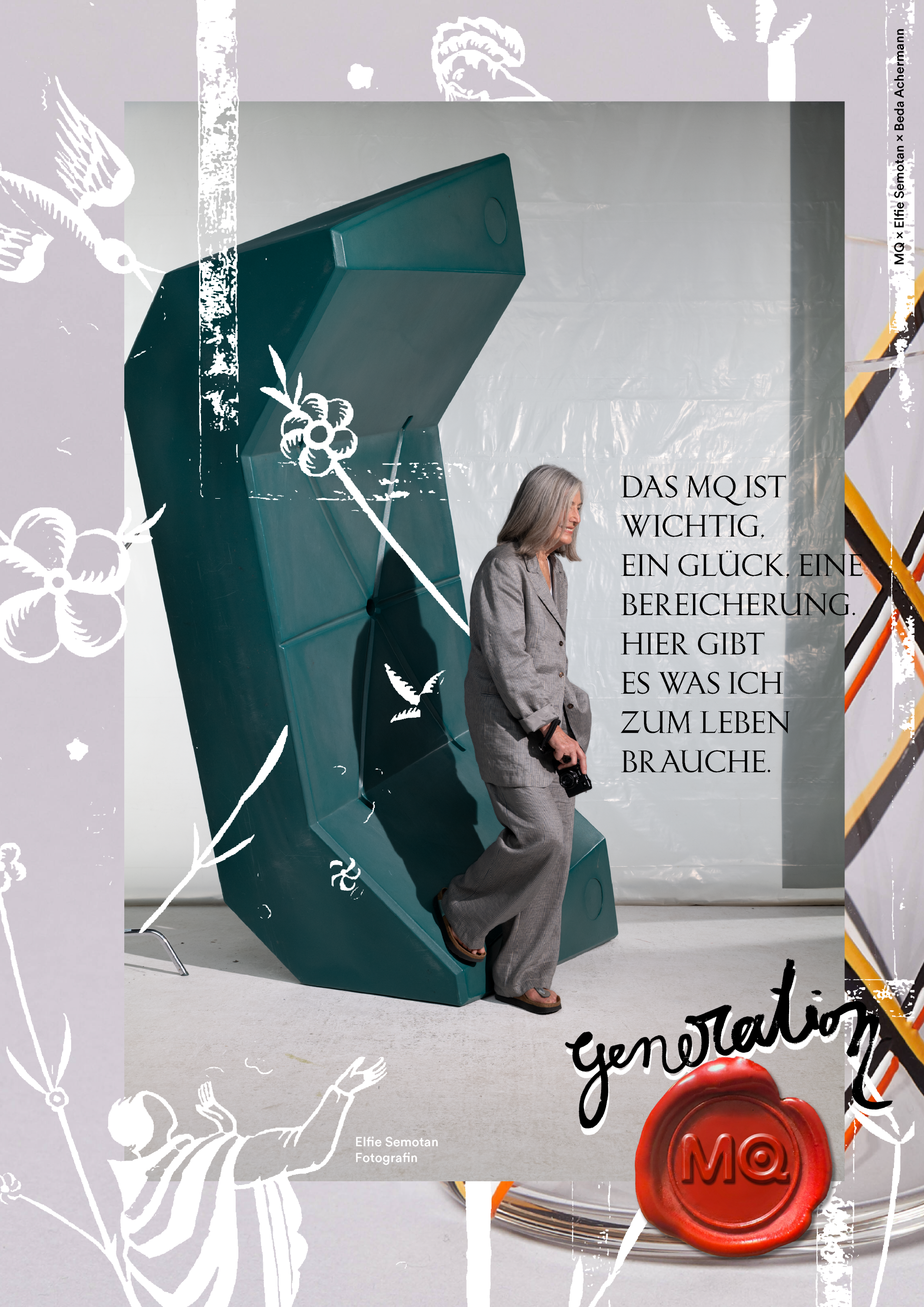 So entsteht das Bild einer Gemeinschaft, die „Generation MQ“, die für die Vielfalt jener Stimmen steht, die dieses Kunst- und Kulturareal geprägt, belebt und zu einem Treffpunkt und Denkraum gemacht haben. Sie definiert sich durch eine gemeinsame Haltung: Offenheit, Neugier, Optimismus und den Wunsch nach kreativem Dialog.