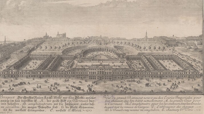 The following years brought several periods of alteration and expansion. From 1850 to 1854, Emperor Franz Joseph I built a Winter Riding School in the classical style, today’s Halle E+G. In 1874 a manège was constructed for the empress Elisabeth. The empress took riding lessons in this octagonal hall with Elise Petzold, a show rider in the world-famous Renz Circus. Today this riding hall houses the library of the Architekturzentrum Wien.
