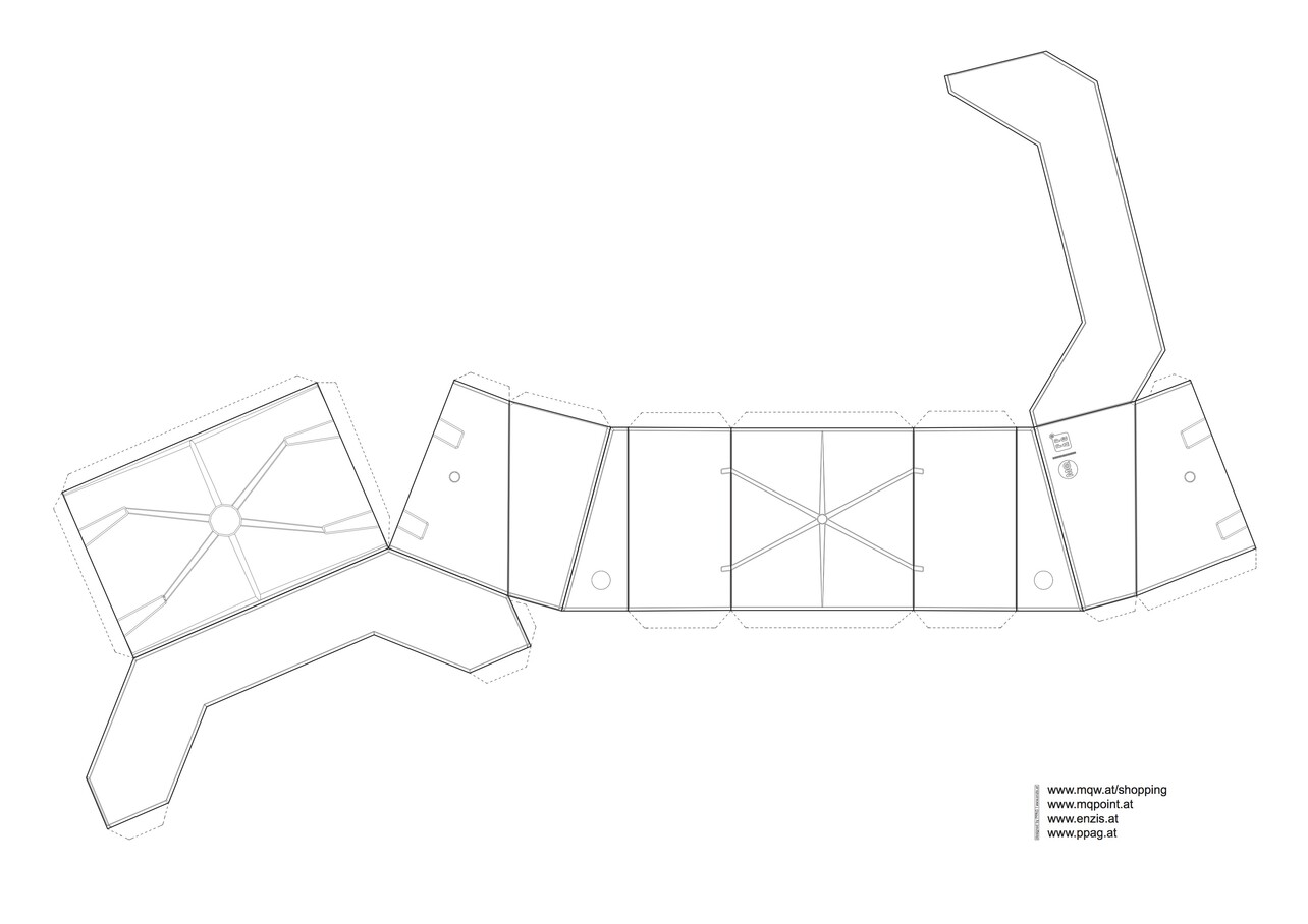 In addition, a small shop area features publications of the Architekturzentrum Wien and several original products that reflect the unique identity of the Az W.