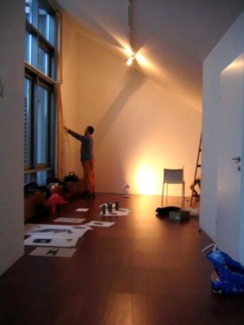 Instant Fusion is common author project of Tomáš Vaněk (CZ) and Juraj Čarný (SK), particularly designed for space of Vienna’s Museums Quartier. During their monthly residential stay in qurtier21/MQ artist Tomas Vaněk and curator/galerists Juraj Čarný has decided to use minimalist loft studio for founding of Vienna´s brand of Gallery Priestor held in Bratislava and realize in its space one day lasting exhibition project. Project Instant Fusion is based on opening of private space, assigned to be a space for short time usage, and on intervention to the renowned context of MQ.