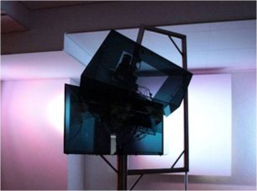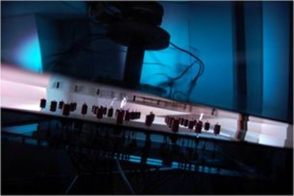 November 2010 - December 2010During her residency in MuseumsQuartier she is working on a new artistic realization in a form of kinetic sculpture. In this work slow movement of a solid causes sequential discharges in array of electrodes installed in a diagonally cut cube. Rotation of the solid leads to a disturbance in the electric field, causing a luminous arc to slowly appear and disappear interchangeably, imitating the play between organic forces of attraction and aversion.