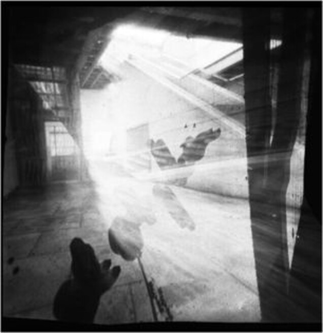In the work of Dorota Walentynowicz the photographic process itself gains a performative aspect. The artist builds her cameras herself, sculpting them in geometrical shapes associated with elementary solids. These cameras then become extension of the body, as artist places and displaces them according to own spatial and geometrical relations. Various built in mechanisms that distort film movement inside the camera, work out an own time-space order.