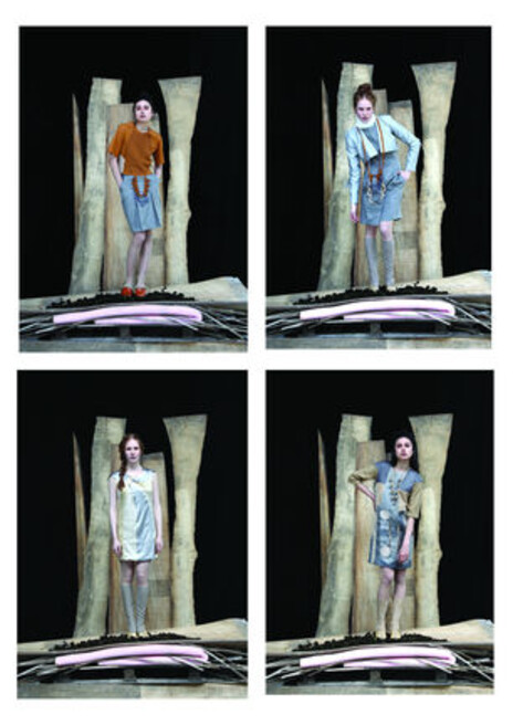 Groupshow, exhibited of five silhouettes from Knock on Wood graduation collection.