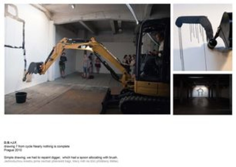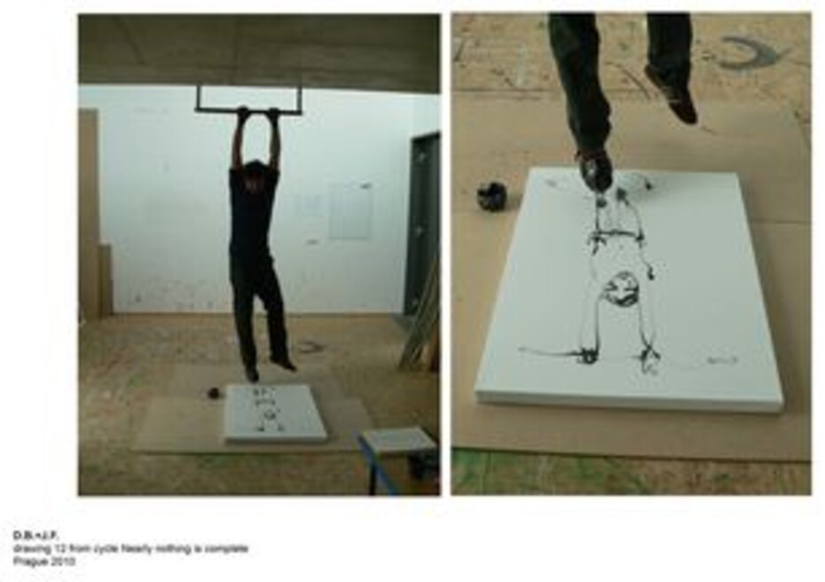 September 2012 - October 2012Together with Jiří Franta, I have been working with drawing and its crossing over for a long period of time. In addition to time-lapse projects, during which we have often drawn directly onto the wall of a gallery, and beyond performative actions investigating the process of origination and the participation of handwriting in the resulting drawing (the Almost nothing isn’t completely cycle), we have now come to time-consuming large format drawings. We are continuously creating a series of drawings, format 65x50, with which it is not clear beforehand what will arise and, by alternating, the resulting drawing defines itself and shifts. In the same manner, we dealt with a pencil drawing, format 410x257, and we have the intent to create many of these large format drawings.