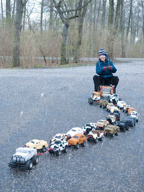 We would carve a group of small primitive wooden sculptures, then present them to Anne as toys, and finally exhibit the pieces after they have undergone a transformation from her playing with them, nibbling and breaking them. Also a video taken of Anne playing with the sculptures would be projected beside it.