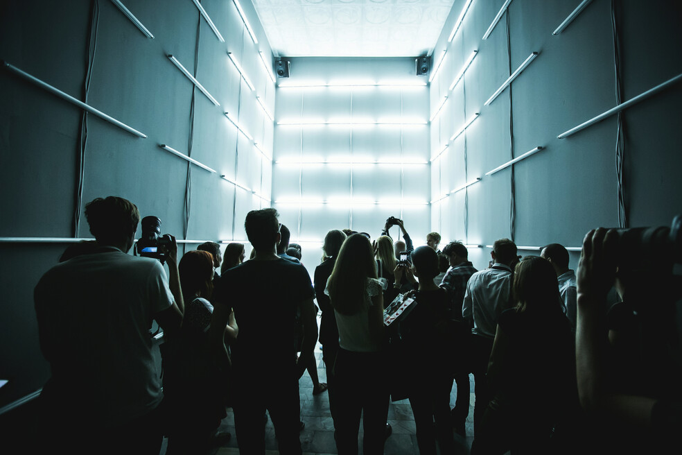 The evolving lightscape adds an element of time to the experience of the exhibition. The attention of the public will be caught and transferred to the artworks in a number of ways. To our knowledge, this approach has been used a number of times in soundart and multimedia exhibitions to prevent a cacophonous overflow of sound, though it is much rarer to use light as a guiding and defining element.