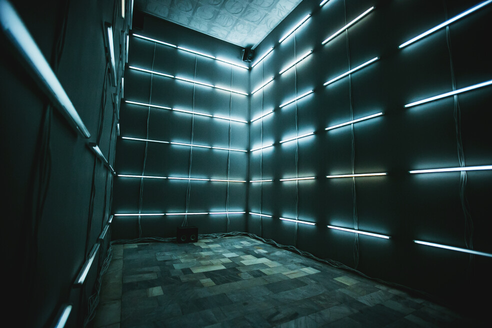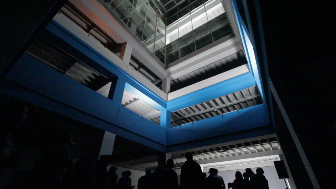 The work is site-specific, ATK! looks for architecture out of the ordinary to make a one time experience. By combining lights and music, the performers influence the entire audiovisual perception of the audience’s environment, without reducing the experience to watching a screen. It gives presence to the performers, they aren’t anonymous robots hiding behind screens, but visible and active manipulators of the audiovisual scape.