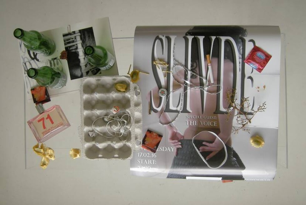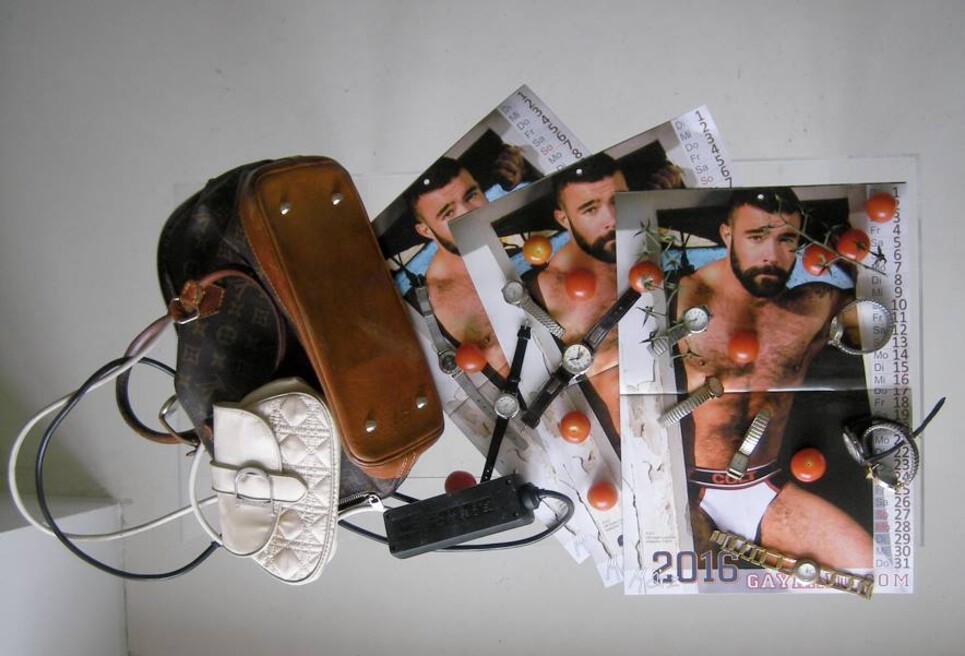 I had the privilege to stay in an amazing studio viewing to the Volkstheater. I was researching about the movements of guestworkers. So most of the time i used the space to think about the work. I went often to the main bus station from Vienna, where people travel mostly to yugoslavia. Observing their luggage and inhaling the spirit there. Not really cause of the colonialization more to remember when i used to travel to croatia with the bus. However i also had a solo exhibition at Jupiter Woods. Vienna Depedendance, now known as cordova gallery run. I was showing various bags i got from my mom that she got from her former Boss. All the bags had a typical "yugoslavian" chic. What i mean like she got them from a authority. Because she didn't needed them anymore. I loved them and made a work out of it. called it Opportunism. Besides that i organized two parties in Vienna in my favorite gay bar inside. When i was living in Vienna i used to do parties and screen slideshows there. I also developed a work there that I was also showing at my solo show. A bag of rotten apples with watches dripping into a fake louis vuitton bag. I also made a series of photographs that been focusing particularly on the gesture. The work at Ajnhajtclub included two tables with several "thrown" items like soccer-fan paper cups frames. Photography is a useful medium to capture some compositions in a productive way. On the picture you can see basically everything. I was totally in love with a gay nudemodel named "Brian Meyer" He´s a dj and interested in philosophy. And i was obsessed with mimosas. Nevertheless i had a fantastic time in Vienna. Met all people i cared about and contributed an amazing piece to Bogomirs show. Thank you