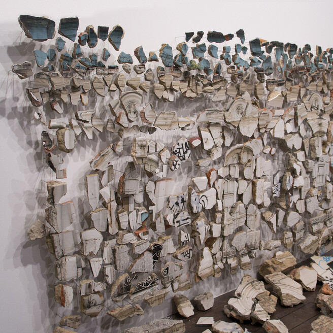 Cárdenas installation, sculpture, mixed-media work delves into urban ruins and cities landscapes as indications of social transformation, loss and historical memory. Remains, fragments, discarded structures, are used as material for her work, with a sculptural strategy that is as much destructive as constructive.