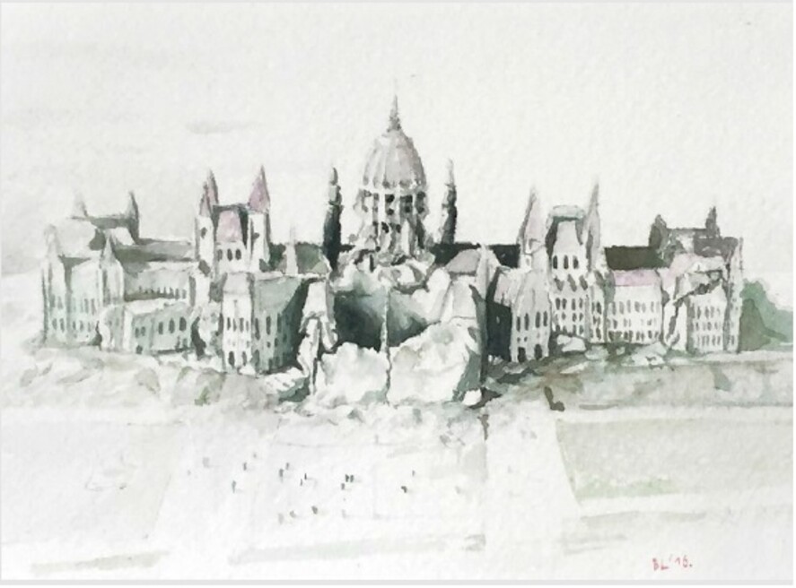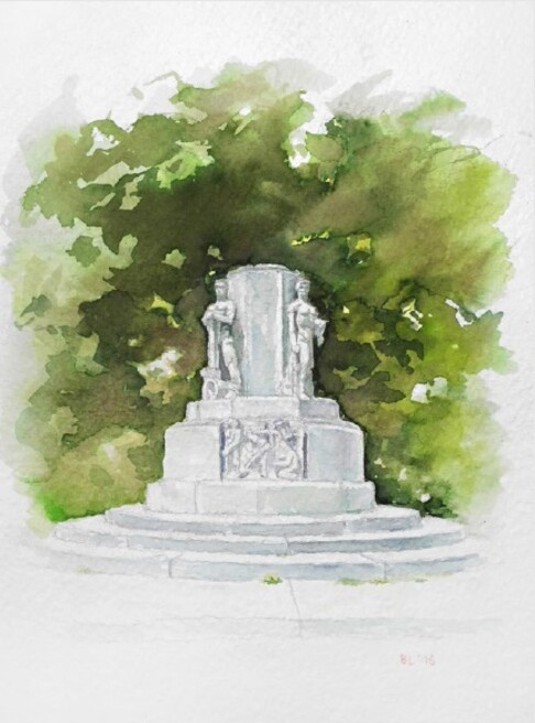 Immovable Land Cute Little Aquarelles Series, Watercolour, A/6, 2016 - Lueger Memorial (It is up to me to decide who can have a statue) Cute Little Aquarelles Series, Watercolour, A/6, 2016