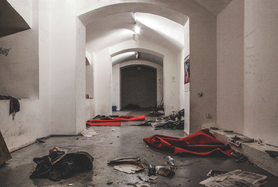 Krakow, Poland, Bunkier Sztuki (Galery of Contemporary Art), Beggars
