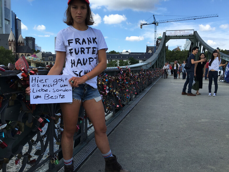 In the Wagner year 2013, the FHS distributed 50,000 forged tickets for the premiere of the Bayreuth Festival in order to criticize the posthumous speech democratization of the anti-Semite Richard Wagner; In 2015 they protested against the expulsion of drug addicts from the Frankfurt train station district with a »heroin performance« and in a public storm of indignation exposed how urban society works; In 2016, the collective sparked a controversial discussion on social media with the announcement that it would break love locks from bridges and melt them down; In February 2018, Frankfurt's chief of police was outraged by the group that had parked a burned-out patrol car in the Frankfurt train station district in order to draw attention to the rigid approach of the regulatory authorities; in the spring of the same year, the FHS faked a performance in MoMA PS1 and in late summer 2018 an attack by the Identitarian Movement on the Wiesbaden Biennale. In 2019, the group moved the figurehead of German culture, Johann Wolfgang von Goethe, into the sights of #MeToo. Most recently, the FHS staged the theft of Beuys' “Capri Battery” and the transfer of a replica to an ethnological museum in the German ex-colony of Tanzania as part of the “Schlingensief2020” festival at Theater Oberhausen. In the same year the collective realized the didactic play "Motor" in the new society for fine arts Berlin; an answer to Brecht's “The Measures Taken” and Müller's “Mauser” as well as the internationally successful shift to the right, conspiracy theories and fake news.