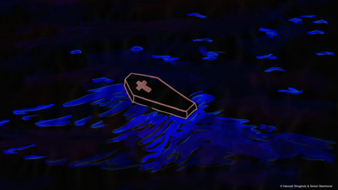 Zum Knochen is a fictional, feature-length animated film that describes a world between existence and non-existence. Superficially, Zum Knochen is about an immoral business with death. On the surface, it addresses social issues such as migration, borders, European politics and ethics are addressed.