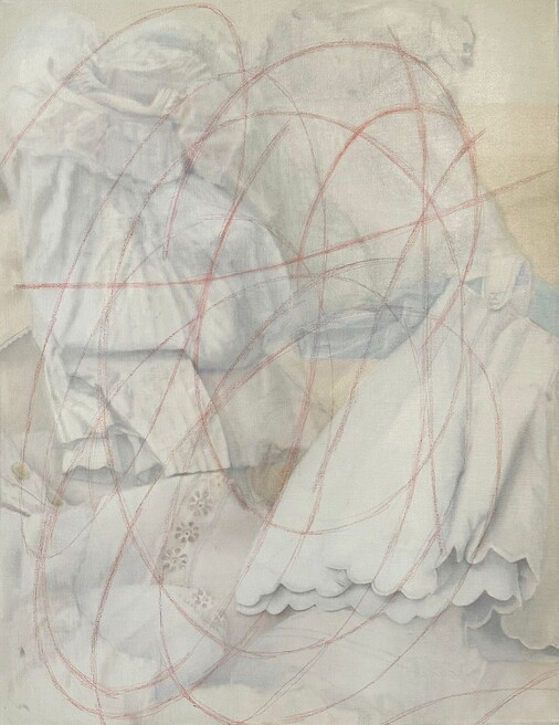 Rzaeva uses traditional painting techniques and works with different materials and fabrics. For the artist, the fabric ground is an essential component of her paintings. Using the technique of thin lettering, she applies the paint in fine vertical lines along the fabric structure of the canvas, entering into a dialogue with the surface texture. Rzaeva describes her artistic method as observational. For her, art is an integral part of philosophising and recognising the concept of time. "For me, time is associated with constant change. It is always a search and reflection, a non-permanent position". Spontaneity and the study of one's own perception are key aspects of her art. With the subtlety, "tremulousness" and lightness of her works, the artist wants to draw attention to the impermanence and fragility of self-p erception.