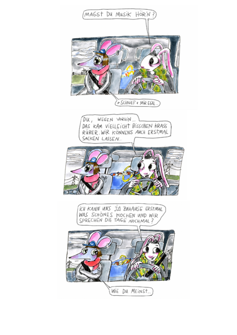On Tue 27.02.2024, 18.30h Shenja Schittkowski reads from her comic Faulibär gentrifies Vienna at MQ Raum D.