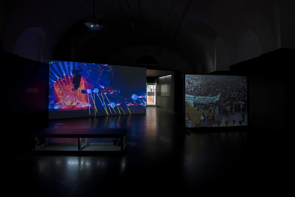 Cornelius Harris and Mark Flash, both part of the historically significant music collective Underground Resistance (UR), have produced a video essay created exclusively for this exhibition, which documents the history of musical forms of resistance of Afro-Americans and shows how central music always was to the struggle for freedom in the USA and beyond. Sounds range from drums that were banned in the United States after it was realised that they concealed secret messages, to gospel songs which used the flight of Moses out of Egypt as code for an escape out of slavery. This is followed by sounds which served as musical accompaniment to the civil rights movement, and Techno up to Underground Resistance.