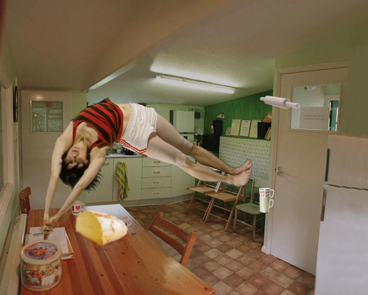 This work is inspired by the artist's archive of concealed levitation devices in historical images.