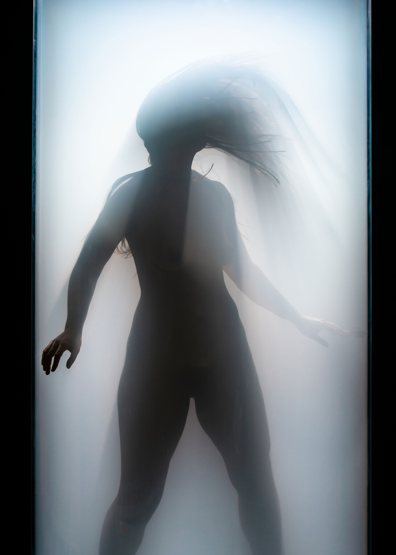 Is this creature an experiment, maybe even a genetic recreation like Ripley in part 4 (Resurrection) of the Alien film series? Perhaps. In any case, what happens in this piece by the renowned Viennese choreographer Doris Uhlich with the body of the human being Doris Uhlich is as well somewhat uncanny. Centre stage at Odeon theatre stands a large glass tube, an undefinable, misty substance wavering inside. There! A hand, an outline, a leg, a naked body that vibrates in the high-energy tension of the music by Boris Kopeinig. In this solo piece, Doris Uhlich tackles the delicate subject of body modifications, including all that comes with it – from promises of happiness to dystopian prospects.