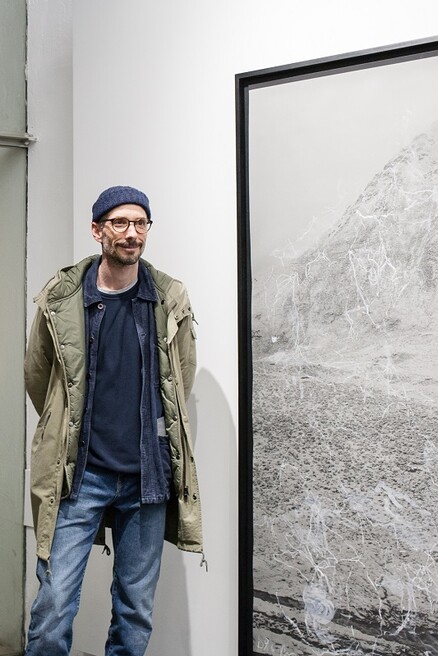 MH: I took that hike in August 2004. Six months later, I developed the films. I have looked at the negatives time and again, stored them, and finally rediscovered them in 2020. Walking is an intense experience written into my body. Often, I grasp intuitively that something I have done is important – but I do not know yet why. Our relationship with nature is mysterious, there may not be any answers. Sometimes there is nothing to tell, only trivial things like: It was cold, I was alone, I was lonely. And sometimes I don’t know how this experience can manifest in a picture right away. It takes time, often I return to these places years later, I start walking from different directions and find my own invisible trails. Then I remember and try to arrange the fragments into a whole. The same goes for my work at EIKON Schauraum. It presents a moment of great tension: Early morning, I am leaving my snowbound tent to walk along a hill at 4800 metres altitude. I observe it, I speak to it, to myself. I want to capture these steps, this panorama. I take two pictures, with a 30-minute-interval. That’s it. In my recent work, I draw over the photos with chalk, a dusty material. Sometimes I use my fingers, intuitively retrieving the moment.