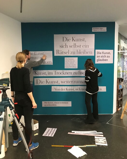Veronika Schubert: I love to draw on the abundance of material. From thousands of sentences in my archives, I have selected specific newspaper headlines which relate to themes of art, have similar structures and allow a kind of humorous approach through condensation.