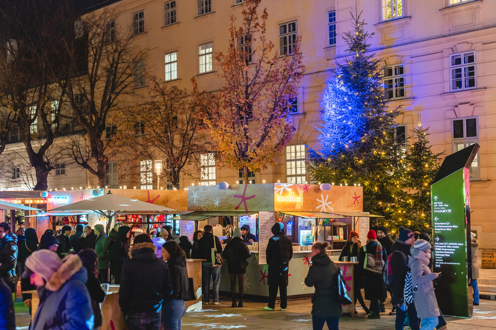 In addition to the exciting activities, the MQ Point offers a special range of Christmas decorations and creative gift ideas every day until 19h. Whether unusual Christmas decorations or the coveted MQ Annual Card - visitors will find inspiration for Christmas here. The four large Christmas trees decorating the MQ forecourt, sponsored by the Austrian Federal Forestry Office, also lend the area a special festive atmosphere.