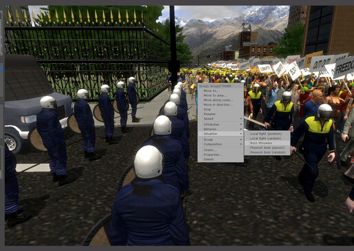 In “Déploiements (Deployments)”, Stéphanie Lagarde shows stagings of state control systems in public space in the form of two simulation processes, that from a potential future, play out deployments in the present. We see pilots of the French air force rehearsing an aerial display for the French national holiday. With gestures, hand movements and a coded language they simulate the choreography of the upcoming air show. These images are combined with police training software that is used for monitoring demonstrations and crowds of people. This simulates a protest scenario and shows police tactical strategies, such as kettling. On the one hand, movement sequences and procedures are trained and automated according to certain patterns, on the other hand, future behaviours are both informed and controlled by pattern recognition, to directly and indirectly restrict scope for decision-making and action.